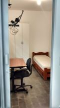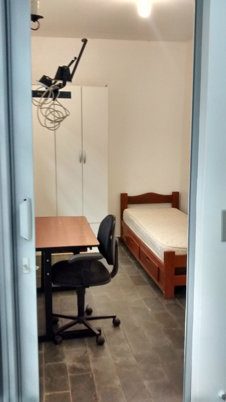 As das fotos são alguns exemplos. Todos quartos equipados com cama e guarda-roupas e a cozinha interna com geladeira e fogão.