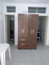 As das fotos são alguns exemplos. Todos quartos equipados com cama e guarda-roupas e a cozinha interna com geladeira e fogão.